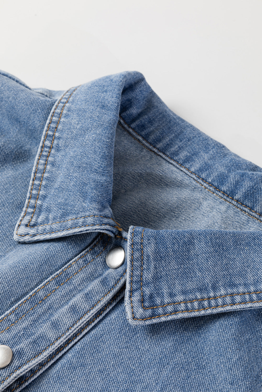Beau Blue Leopard Patchwork Plus Size Denim Jacket