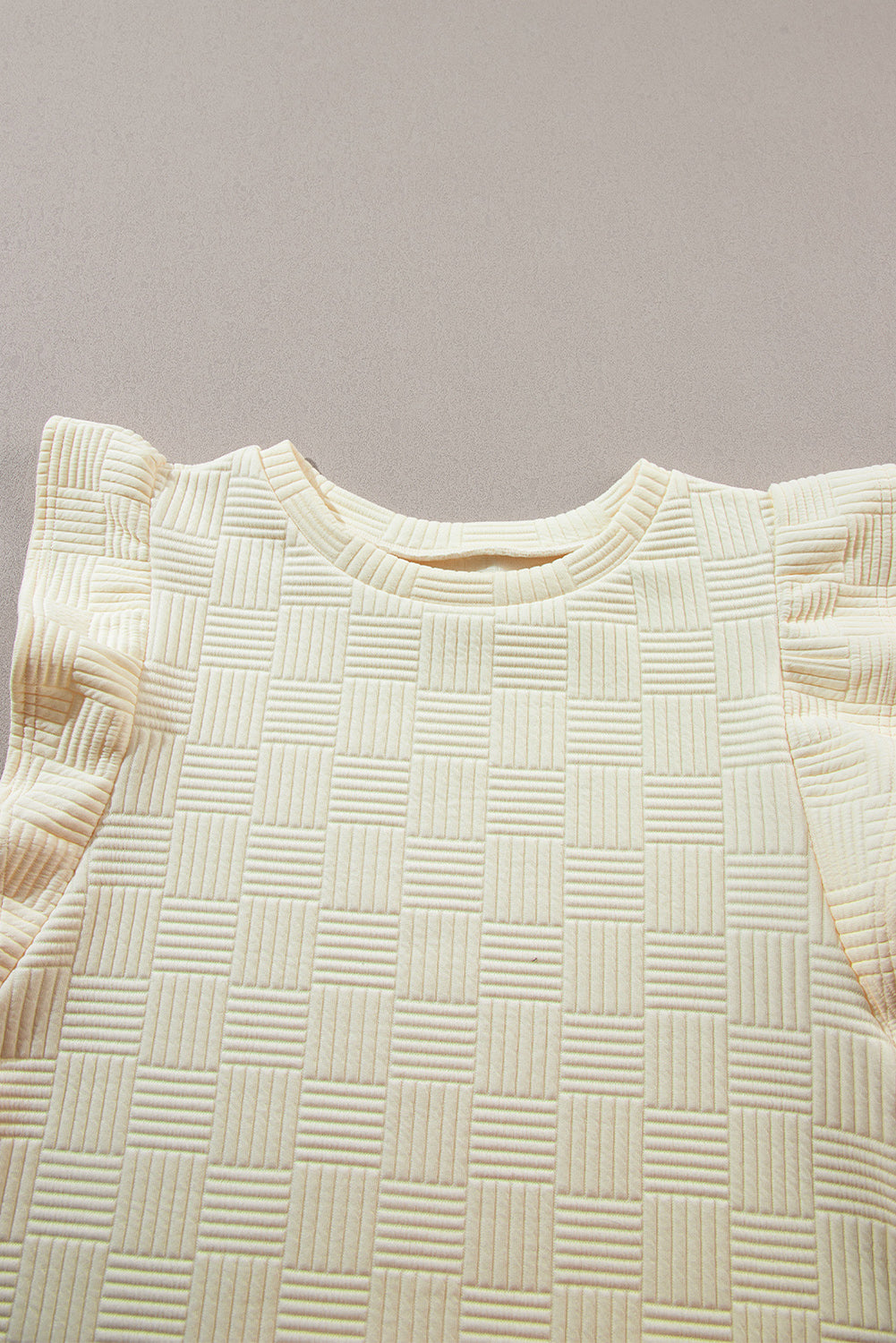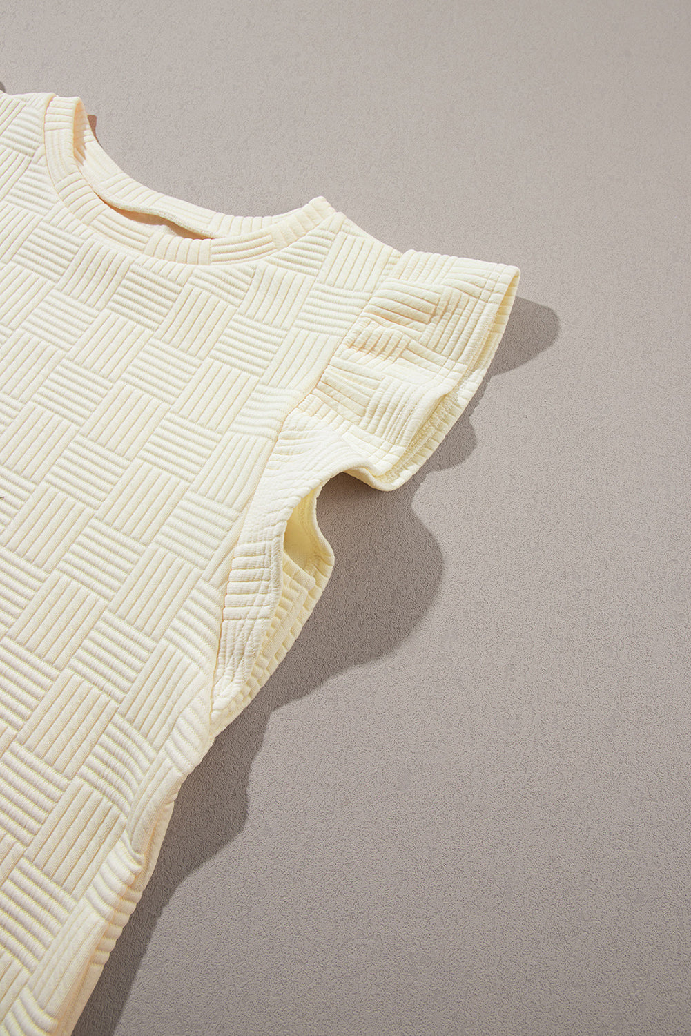 - The shorts set is a stylish and coordinated outfit featuring a textured ruffle sleeve tee and drawstring shorts.
