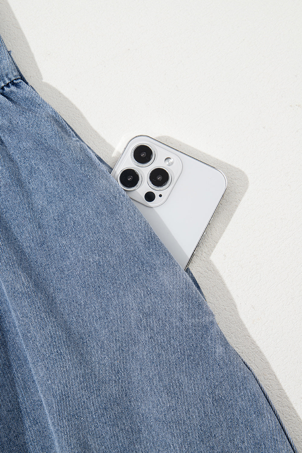 Dusk Blue Bowknot Puff Sleeve Denim Dress