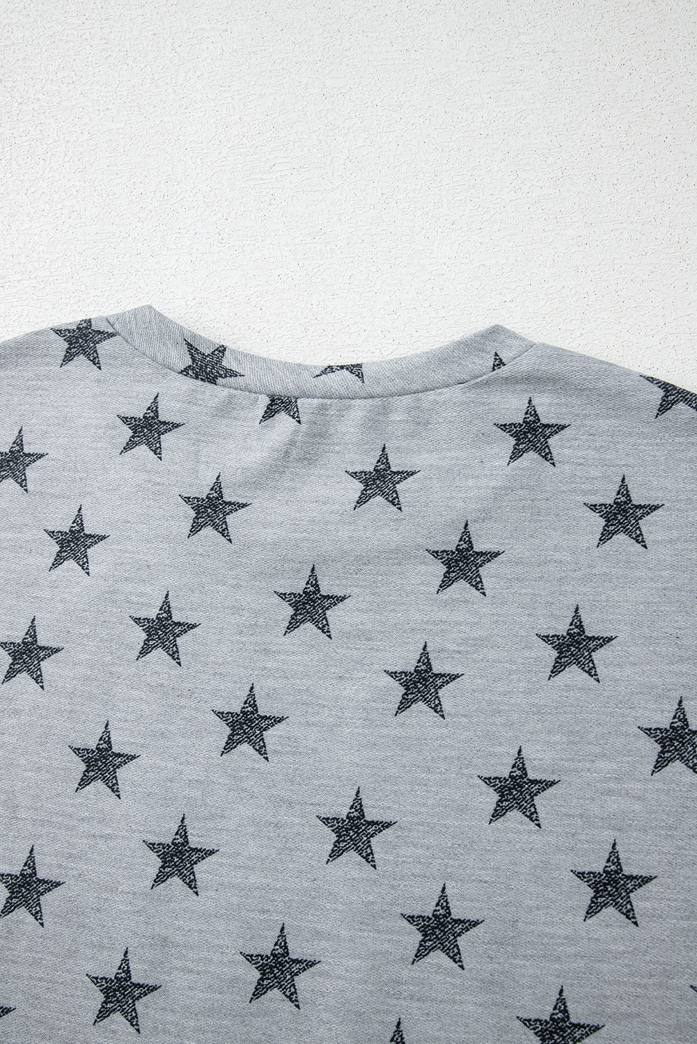 Gray Star Print Tiered Ruffle Sleeve Crew Neck T Shirt